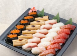 中トロ・穴子・いくら・旬の白身など、京都割烹の職人が市場で選び抜いた高級ネタを握り上げた「雅にぎり 特選三十貫」。